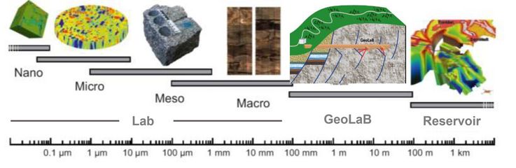 The scales of scientific investigations in geothermal research range from the nano and micro scale — in the order of nanometers and micrometers — up to the scale of geothermal reservoirs deep underground, spanning several kilometers. Scientific tools, measuring instruments, and methods cover this entire range, from microscopes and magnifying glasses to geophysical surveys of large areas.